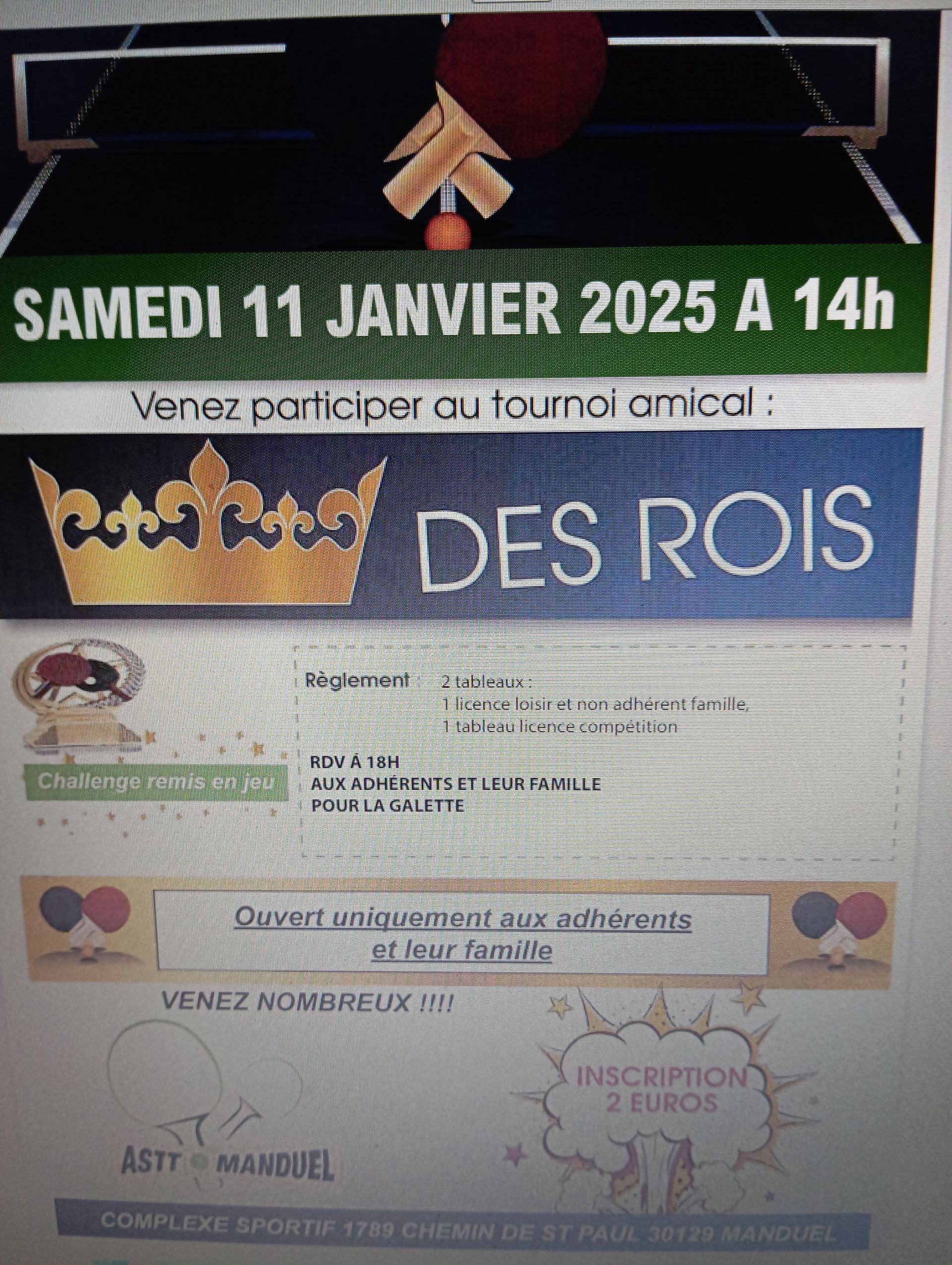 Uniquement pour les + 40 ans un certificat médical d’aptitude à la pratique du tennis de table en compétition.